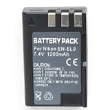 Compatible With Nikon: D3X D40 D40X D60 D3000 D5000Replacement for the original NIKON EN-EL9/EN-EL9A battery packExtend the use of your camera with this brand new high-capacity battery!High-capacity means more power and longer use of your camera! And that means more use with a single charge!?Features & Specifications:Replacing your camera battery is easy!We've sold this battery to hundreds of satisfied cameraowners who replaced their battery on their own. You can too!Buy this battery right now and start enjoying your camera to its fullest potential! New generic NIKON EN-EL9/EN-EL9A Compatible Li-Ion BatteryQuantity: 1Never run out of battery power when you're about to capture the perfect momentExtra power for your digital video camera / camcorderHigh capacity / rechargeable Li-ion Battery with premium cellLatest Lithium Ion battery technology gives the best performance possible compared to other battery technologies such as Nickel Metal Hydride (Ni-MH).Absolutely no memory effect so that you can charge battery at anytimeIntegrated microchip prevents overcharging & lengthens battery lifeVoltage: 7.4VCapacity: 1200 mAhAccessory ONLY. Camera not included.Best replacement for the original NIKON EN-EL9/EN-LE9A battery pack. High quality product with big discount from the original one.