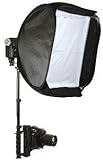 FREE SHIPPING*: The portable flash bracket and the mini softbox help you achieve studio quality images with your portable camera flash. The perfect combination for your on-location job. The kit works with most hammer-style portable speedlights, incl. Canon and Nikon TTL dedicated flash.