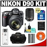 Kit includes:♦ 1) Nikon D90 Digital SLR Camera Body & 18-105mm DX VR AF-S Zoom Lens♦ 2) Nikon 55-200mm f/4-5.6G VR DX AF-S ED Zoom-Nikkor Lens♦ 3) Transcend 16GB HC SecureDigital Class 6 (SDHC) Card♦ 4) Nikon EN-EL3e Rechargeable Li-ion Battery♦ 5) Vidpro STU-30 Digital SLR Camera Carrying Case (Black)♦ 6) ImageRecall Digital Image Recovery Software♦ 7) Precision Design USB 2.0 SecureDigital (SDHC) High-Speed Memory Card Reader♦ 8) Precision Design 6-Piece Lens Cleaning Kit♦ 9) Precision Design Memory Card Storage WalletThe Nikon D90 SLR Digital Camera, with its 12.3-megapixel DX-format CCD, 3-inch High resolution LCD display, Scene Recognition System, Picture Control, Active D-Lighting, and one-button Live View, provides photo enthusiasts with the image quality and performance they need to pursue their own vision while still being intuitive enough for use as an everyday camera. The Nikon AF-S DX Nikkor 18-105mm VR lens features built-in Vibration Reduction II system providing equivalent shutter speeds 3 steps faster than standard lenses. It also has one ED glass element and one aspherical lens element, optimized for use with DX-format SLRs. The 18-105mm also features ultra-compact Silent Wave Motor allows for blazingly quick, silent autofocus.The Nikon 55-200mm VR Zoom Lens is a versatile and ultra-compact telephoto zoom lens that offers a 3.6x zoom range. The innovative Vibration Reduction (VR) System allows handheld telephoto zoom shooting even in poorly lit conditions.Take more high-resolution pictures faster with this 16GB High-Capacity SecureDigital (SDHC) memory card.Increase your shooting capacity with this powerful Nikon EN-EL3e Lithium-ion rechargeable battery.This durable carrying case will easily hold your camera with attached zoom lens, plus four lenses, a flash, and accessories.