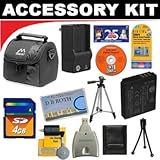 Kit Includes:* 1) 4GB Secure Digital (SD) Card - Take more pictures faster with this 4GB SD Memory Card* 2) USB 2.0 High Speed SD Card Reader - Transfer files easily and quickly with the included USB 2.0 SD card reader* 3) Deluxe Camera Case - Protect your valuable camera investment with this carrying case.* 4) Spare High Capacity Battery - A spare rechargeable battery is an essential accessory. No power, no pictures!* 5) Mini Rapid Charger - This Multi-voltage Charger plugs directly in to your wall outlet or your car cigarette lighter and charges your battery in approximately 60 minutes* 6) Flexible Tabletop Tripod - Don't be the invisible man (or woman) in your family photo album! Get yourself in the picture using your camera's self-timer and this ultra-compact Tabletop Tripod.* 7) Screen Protectors - These LCD Screen Protectors reduce glare, enhance view, prevent scratching, wear and damage* 8) Full Size Tripod - Tripod with Carrying Case: lightweight and sturdy tripod* 9) Micro Fiber Cloth - Eliminate dust and smudges from your camera * 10) Memory Card Wallet - Keep multiple memory cards protected and organized with this durable storage wallet.* 11) Deluxe 5-Piece Cleaning - This 5-Piece Cleaning Kit contains an assortment of useful cleaning tools such as lens cleaning tissues, lens cloth, cleaning solution, a blower brush and cotton swabs.* 12) Image Recall Image Recovery Software - Recover lost or deleted images from your memory cards with Image Recall Image Recovery Software with NO expert knowledge required!* 13) BONUS!! Free 25 Quality Prints (Promo code # on invoice)