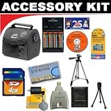 Kit Includes:* 1) 4GB Secure Digital (SD) Card - Take more pictures faster with this 4GB SD Memory Card* 2) USB 2.0 High Speed SD Card Reader - Transfer files easily and quickly with the included USB 2.0 SD card reader* 3) Deluxe Camera Case - Protect your valuable camera investment with this carrying case.* 4) Multi-Voltage Rapid Charger with 4 NiMH Batteries - This high performance charger kit is designed for use with today's high-tech devices. It includes 4 ultra high capacity 2700mAh Nickel Metal Hydride (NiMH) batteries, which can be charged over 1000 times. And since they're memory-free, you don't have to run the batteries down before recharging* 5) Flexible Tabletop Tripod - Don't be the invisible man (or woman) in your family photo album! Get yourself in the picture using your camera's self-timer and this ultra-compact Tabletop Tripod.* 6) Screen Protectors - These LCD Screen Protectors reduce glare, enhance view, prevent scratching, wear and damage* 7) Full Size Tripod - Tripod with Carrying Case: lightweight and sturdy tripod* 8) Micro Fiber Cloth - Eliminate dust and smudges from your camera* 9) Memory Card Wallet - Keep multiple memory cards protected and organized with this durable storage wallet.* 10) Deluxe 5-Piece Cleaning - This 5-Piece Cleaning Kit contains an assortment of useful cleaning tools such as lens cleaning tissues, lens cloth, cleaning solution, a blower brush and cotton swabs.* 11) Image Recall Image Recovery Software - Recover lost or deleted images from your memory cards with Image Recall Image Recovery Software with NO expert knowledge required!* 12) BONUS!! Free 25 Quality Prints (Promo code # on invoice)