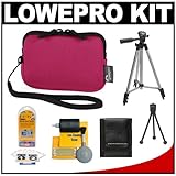Kit includes:♦ 1) Lowepro Varia 10 Digital Camera Pouch (Raspberry)♦ 2) Compact 50-inch Digital Travel Tripod♦ 3) Digital Camera LCD Monitor Screen Protectors♦ 4) Precision Design Memory Card Storage Wallet♦ 5) Precision Design Flexible Tabletop Mini Tripod♦ 6) Precision Design 5-Piece Lens Cleaning KitThe Lowepro Varia 10 offers colorful and versatile protection for a variety of point-and-shoot cameras, MP3 players and cell phones -- zipped up neatly in a stylish, value-priced neoprene pouch. The Varia 10 includes a detachable wrist strap for flexible carrying options: as a wristlet, clutched like a wallet, or attached to a user's key chain or carabiner via the metal D-ring. The dual zipper offers fast and easy access, plus provides extra security when closed. The neoprene fabric is 3mm thick and provides smooth, cushioned protection and abrasion resistance. Interior Dimensions: 4.5W x .7D x 3.3H in. (11.5 x 1.8 x 7.5 cm)Avoid camera shake and achieve maximum image quality by setting your camera on this sturdy, lightweight 50-inch tripod.Reduce glare, enhance your view, and prevent scratching with this set of LCD screen protectors.Keep multiple memory cards protected and organized with this durable storage wallet.Take sharp, blur-free photos and great macro shots with this flexible tabletop mini tripod.This 5-piece cleaning kit contains everything you'll ever need to properly clean your lenses, including Lens Cleaning Tissues, Lens Cloth, Lens Cleaning Liquid, Blower Brush and Cotton Swabs.