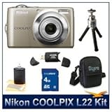 Click Here to see more reviews about: Nikon Coolpix L22 Digital Camera (Champagne Silver), 12 Megapixels, 3.6x Optical Zoom (37-134mm), 3" High Resolution LCD, 4 GB Memory Card, Digpro Camera Case, and Cleaning Kit