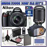 Click Here to see more reviews about: Nikon D3000 10MP Digital SLR Camera w/ 18-55mm AF-S DX VR Nikkor Zoom Lens & 55-200mm f/4-5.6G ED AF-S VR DX Autofocus Lens + Willoughby's 8GB SDHC Class 6 Travelers Bonus Pack #2
