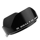 (More customer reviews)I use this lens hood on the Minolta 28-70mm f/2.8 G lens. It reduces flare significantly, and when properly positioned it does not vignette even at 28mm. The tulip petal design looks fine, and the hood is well-made from sturdy plastic. The tightening screw points downward and is out of the way most of the time, but it has to be checked for tightness periodically. (Note: On mine, the screw points downward, not sideways as in the photo.) Occasionally, the hood will move when I am fishing my camera out of the camera bag, and I will get some vignetting until I straighten it again. There is a small white mark on the hood that must remain at 12 O'clock. But the hood snugs down on the filter, and pressure on the hood can cause the filter to unscrew. That's a little annoying, but I can live with it.