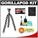 Kit includes: 1) Joby GP1 Gorillapod Flexible Tripod; 2) Cameta Microfiber Cleaning Cloth; 3) Digital Image Recovery Software; 4) Memory Card Wallet; 5) 6-Piece Cleaning Kit. ♦ The Joby Gorillapod firmly secures your compact digital point & shoot camera to just about anything, anywhere and everywhere. It is designed for compact digital cameras weighing up to 12.5 ounces (335 grams) and fits into your purse, backpack, or jacket pocket. Unlike traditional tripods, the Gorillapod doesn't require an elevated flat surface for you to take the perfect shot. The Gorillapod is much more than just a tripod — you can wrap the three flexible segmented legs securely to a nearby tree branch, fence, park bench, or anything else that's convenient. Besides allowing you to shoot at slower shutter speeds for creative effects, it also lets everyone get into the picture for self-timer shots. ♦ Your digital camera's LCD monitor screen and optics usually become soiled with fingerprints, oily smudges and other contaminants. It can be really frustrating trying to clean the LCD monitor safely and completely without smearing using typical lens tissue or lens cloths — especially out in the field. The Cameta Microfiber Cleaning Cloth is designed using the latest 21st Century technology to perform this task quickly, safely and easily. ♦ The Digital Image Recovery Software is fast, easy to use, recovers most popular file formats and works with virtually all brands and types of memory cards. ♦ The Memory Card Wallet holds and protects a minimum of three memory cards and has a convenient belt loop. ♦ The 6-Piece Cleaning Kit contains an Air Blower, Lens Tissues, Lens Cleaner Liquid, Cotton Swabs, Surface Cloth, and Brush.